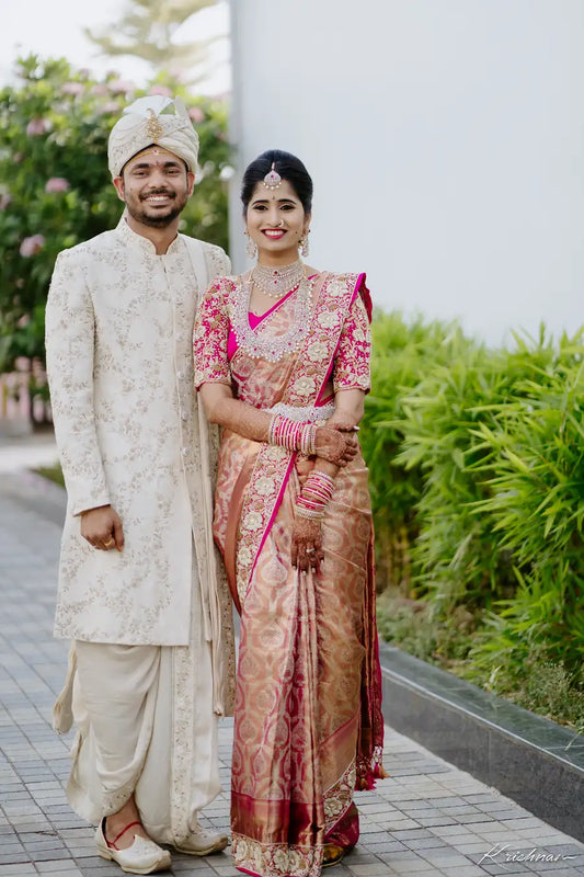 Peachy Paradise - Embroidered Wedding Sherwani Set