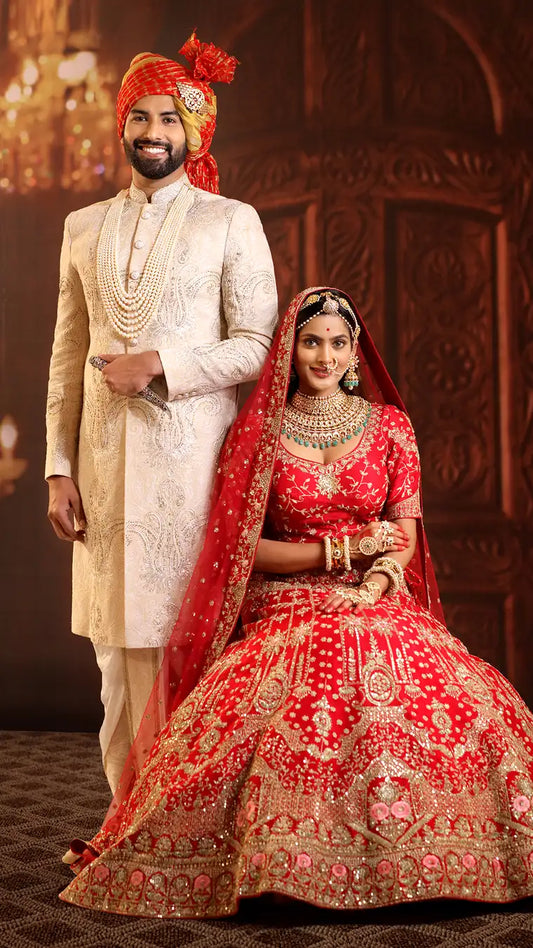 Sunset Hues - Embroidered Wedding Sherwani 5 Pcs Set