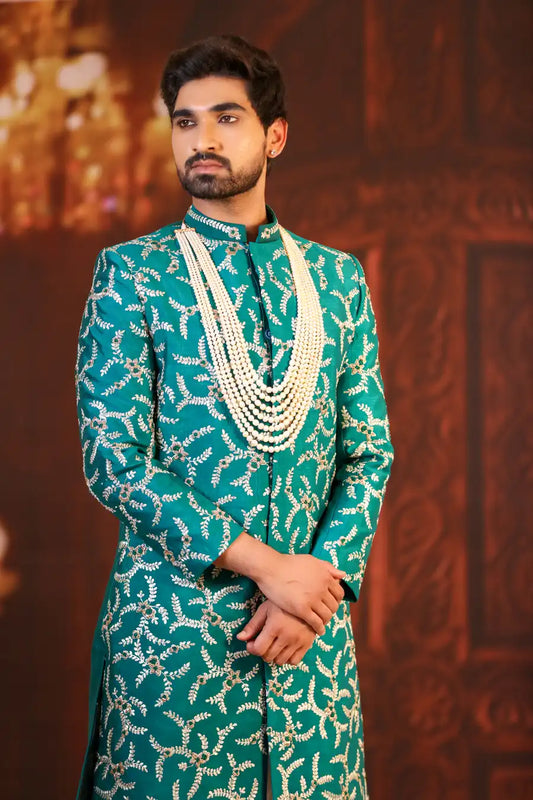 Turquoise Treasure - Embroidered Wedding Sherwani