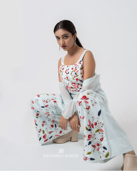 Multicolor Hand Embroidered Jumpsuit With Jacket