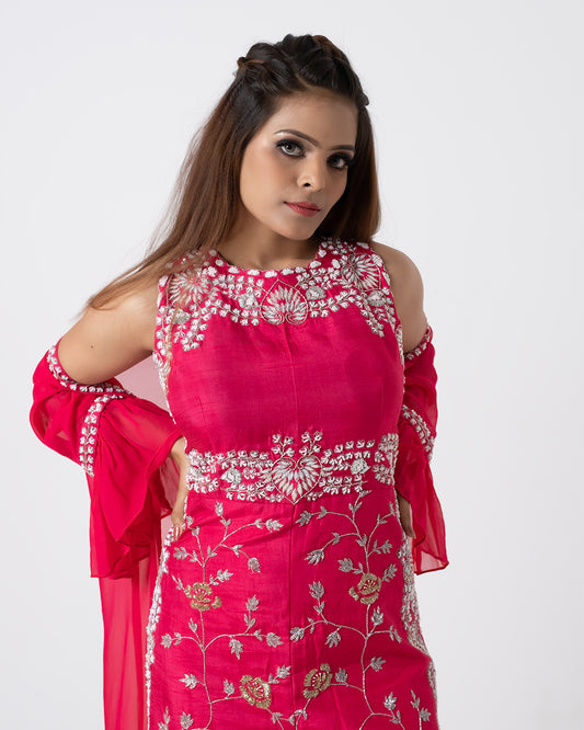 Pink Hand Embroidered Jumpsuit With Jacket
