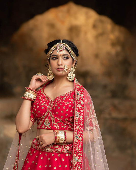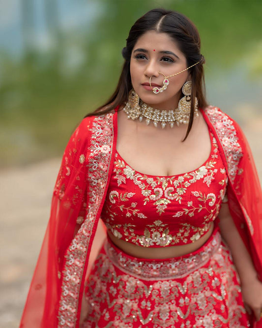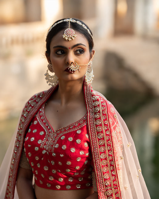 Butter Red Hand Embroidered Bridal Lehenga Set