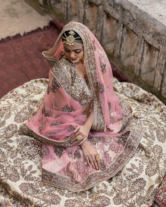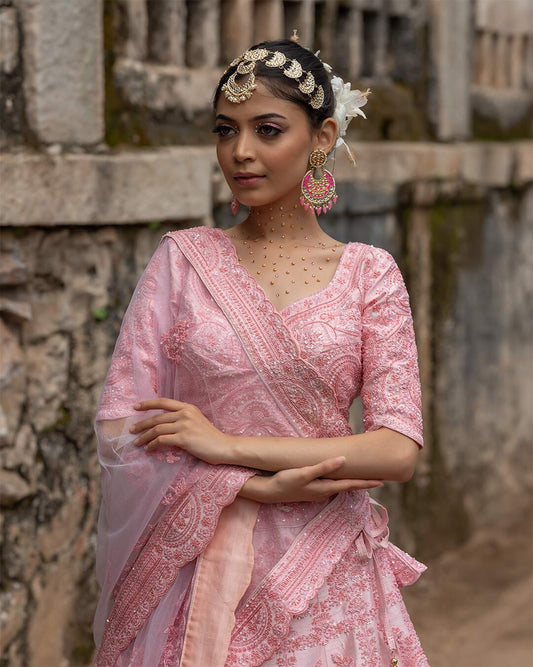 Pastle Pink Sequins Hand Embroidered Lehenga Set
