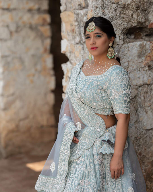 Powder Blue Sequins Hand Embroidered Lehenga Set