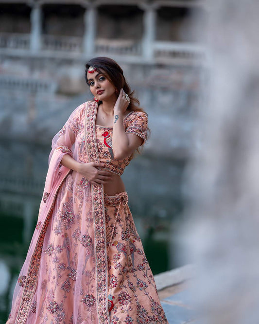 Salmon Peach Hand Embroidered Bridal Lehenga Set